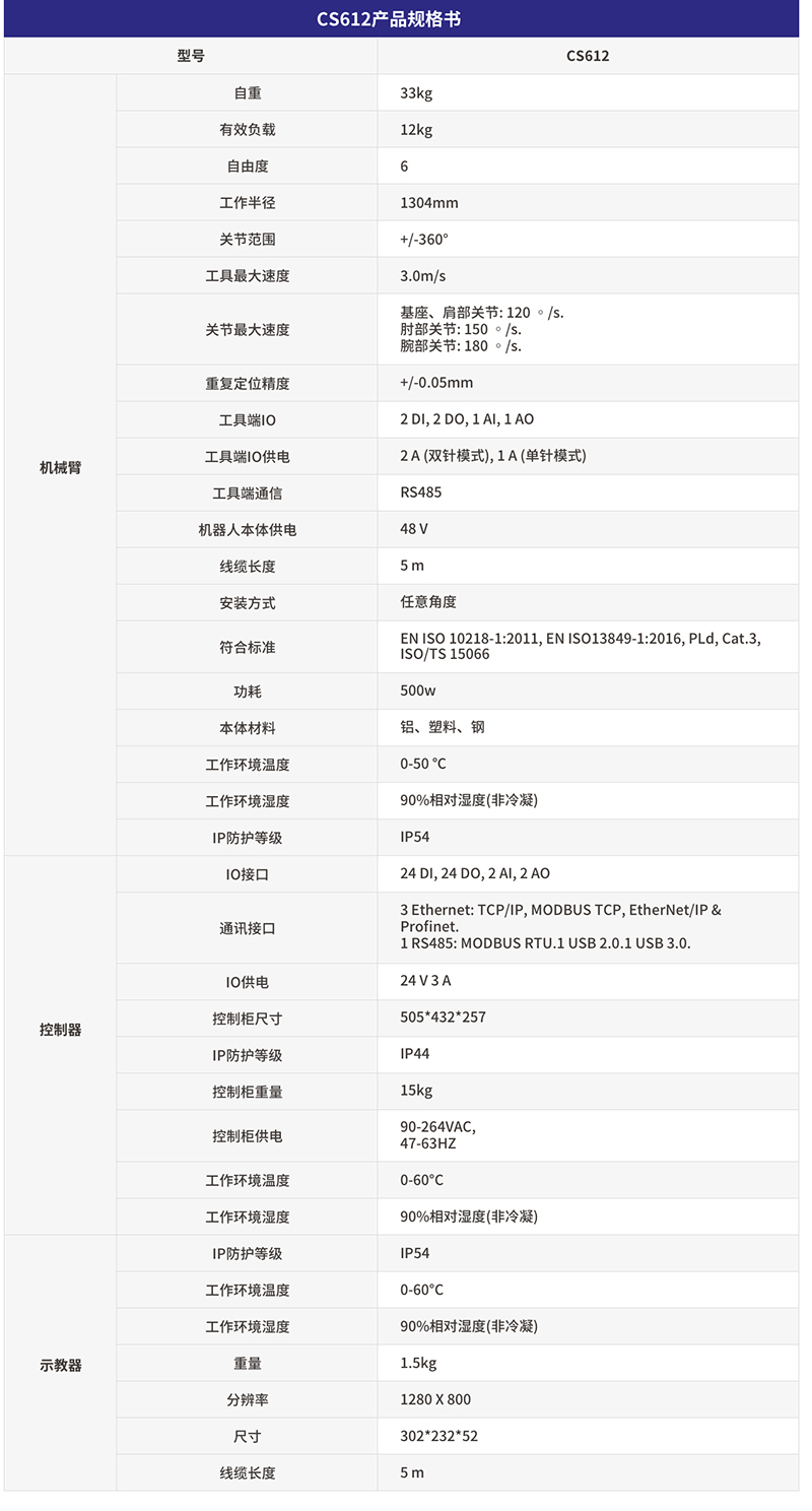 CS612可以自動處理重達12公斤以上的任務(wù)并且不會降低精確度,它是艾利特機器人系列中最大負載的機器人。工作半徑達到1305mm,因此它可以在不同操作區(qū)域之間距離較大的設(shè)施中執(zhí)行包裝和碼垛等任務(wù)。