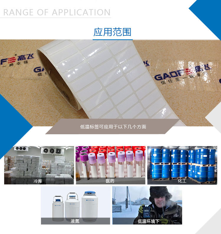 標簽貼試到承貼物后,在-70度的環境中長期使用,而標簽不易脫落,便于冷庫物品的管理與查詢。