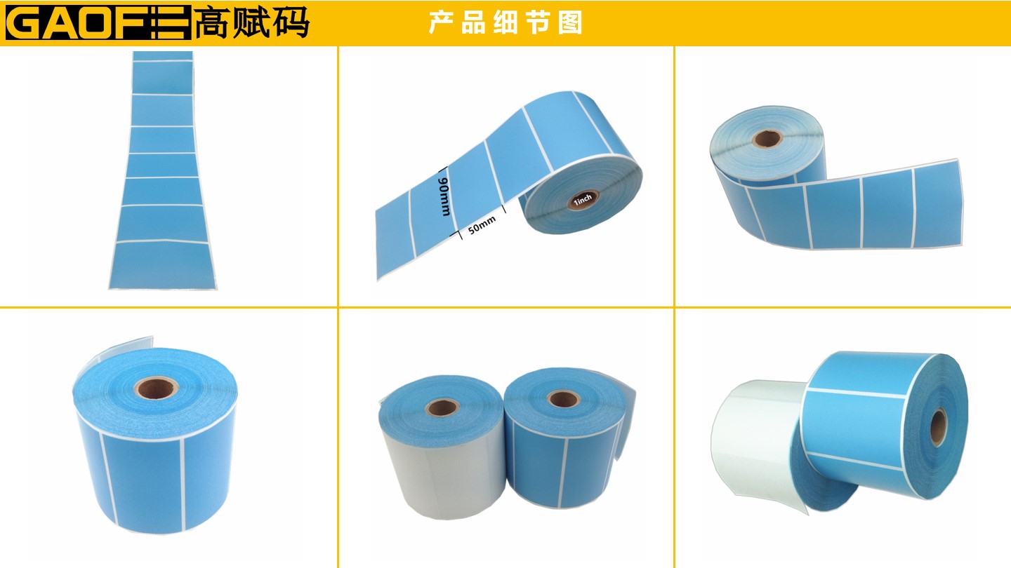 藍色合成紙標簽90mm*50mm可多次使用標簽PP合成紙 可移標簽-高賦碼