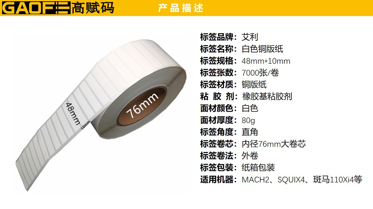 48mm*10mm條碼標簽 強粘性標簽 5209銅版紙 出貨紙標簽-高賦碼