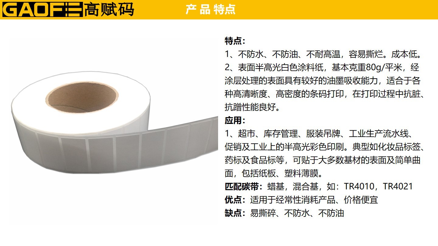 條碼標簽 強粘性標簽 5209銅版紙 40mm*22mm 出貨紙標簽-高賦碼