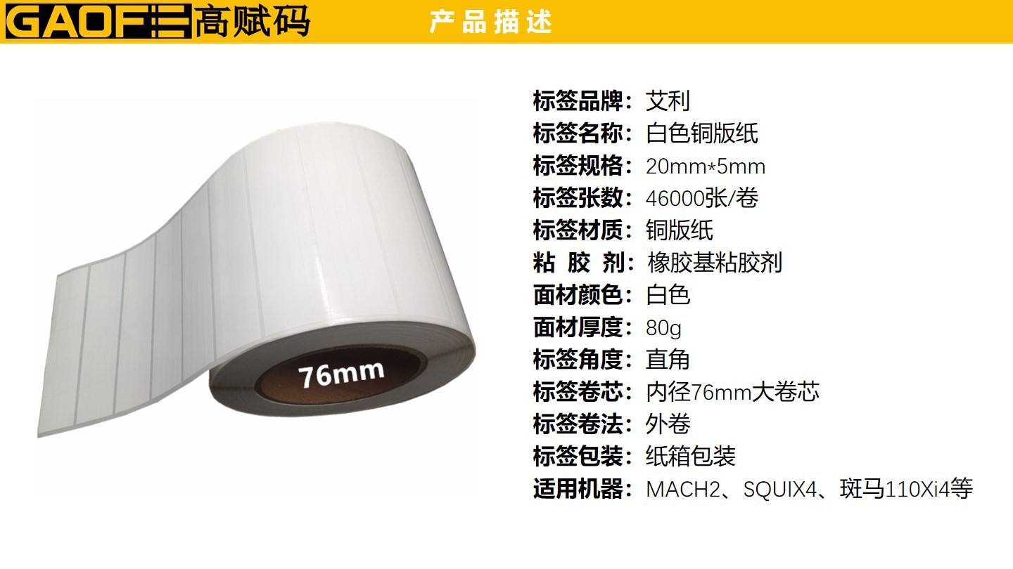 強粘性標簽 5209不干膠銅版紙20mm*5mm 出貨銅版紙標簽 高賦碼