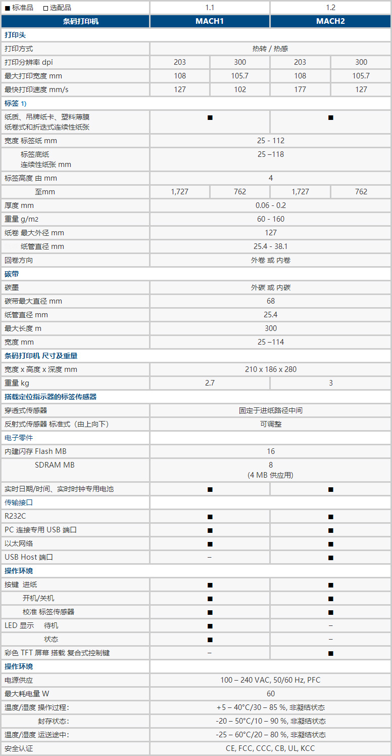MACH1/2 采用 1 至 300 m 長的標準碳帶。置中安裝的最大標簽紙卷直徑為 127 mm。 諸如裁刀、剝離裝置及外掛送紙器等等外圍配件建構出此部易于保養且支持完整的泛用型條碼打印機。