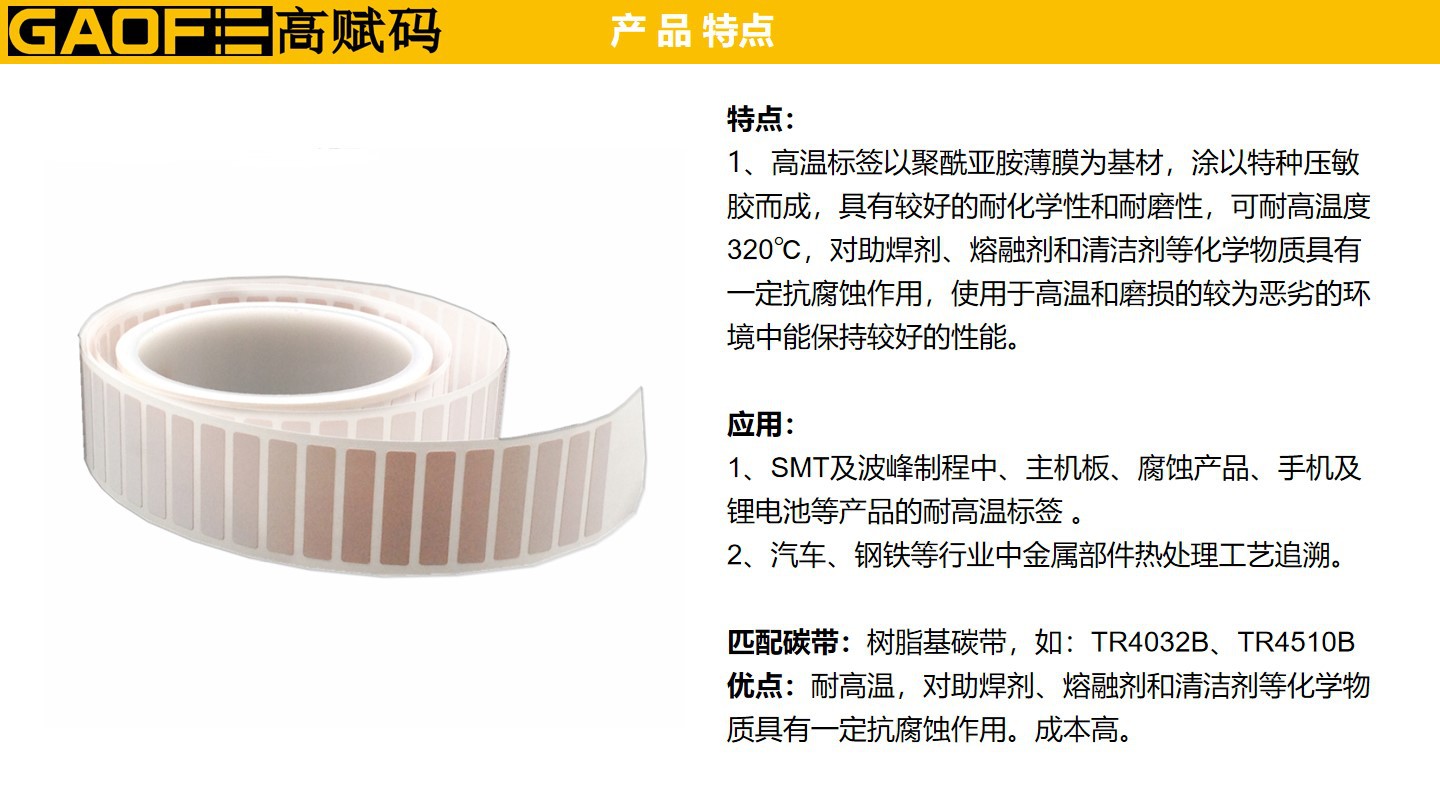 高溫標簽 R0.5圓角 21mm*4mm 76mm卷芯 PCB板專用高溫標簽-高賦碼