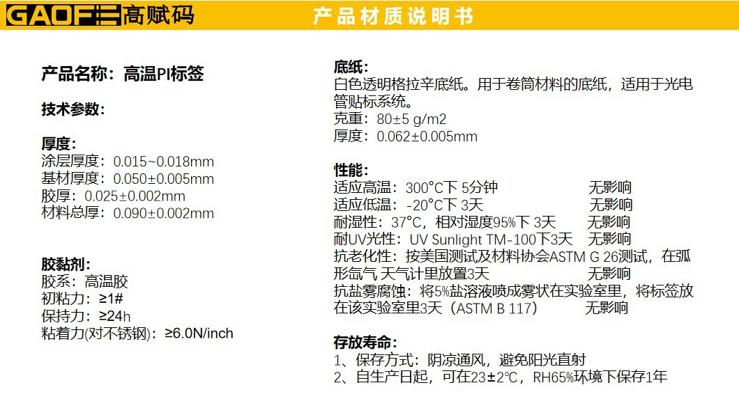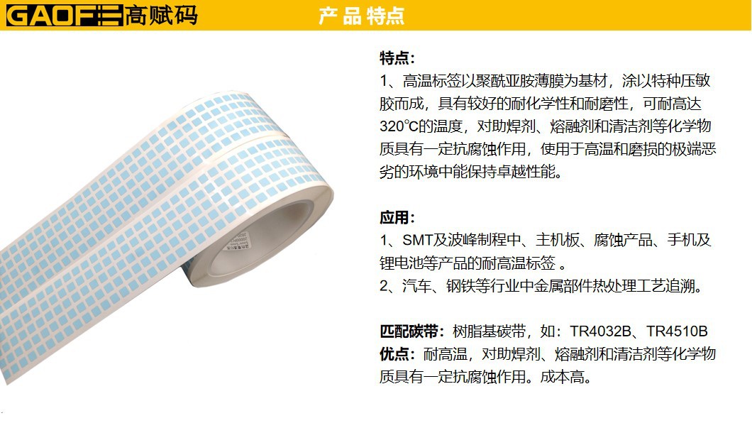 50#耐高溫啞面PI B-428G 21mm*4mm 高溫標簽 電子行業-高賦碼
