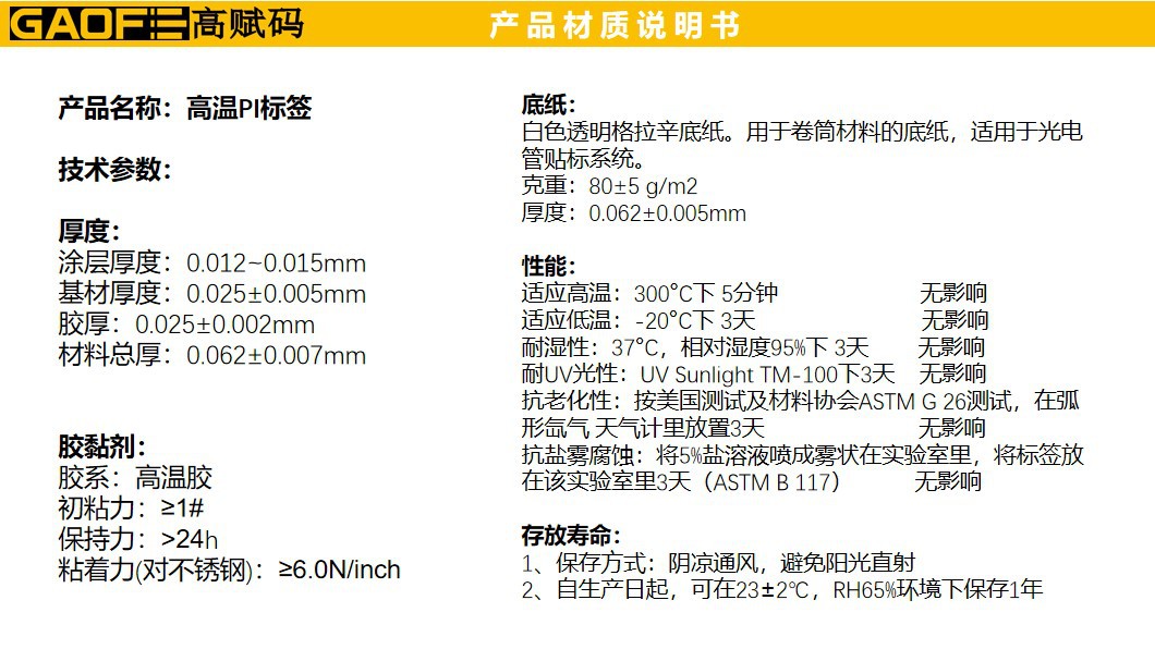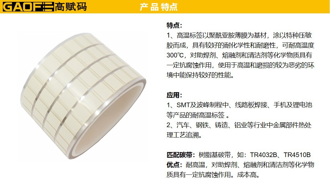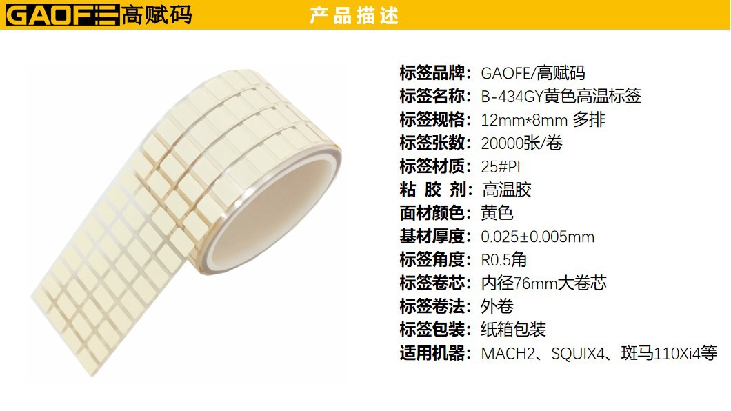 高溫標簽 B-434GY 黃色色高溫PI 12mm*8mm 電子行業-高賦碼