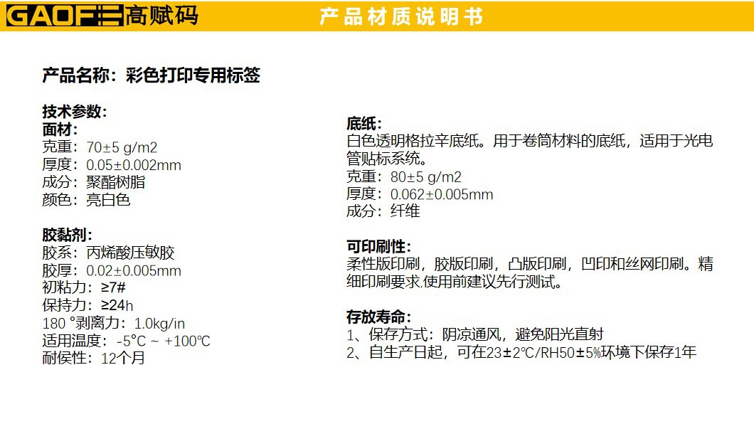 彩色打印機(jī)專(zhuān)用標(biāo)簽