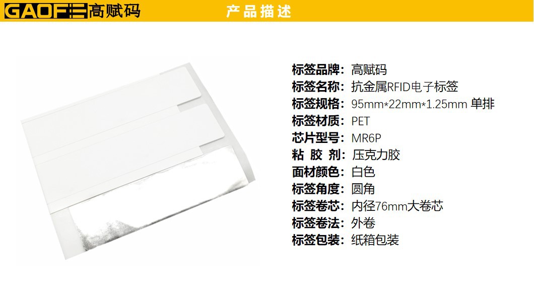 柔性抗金屬RFID標簽 MR6 95MMx22MMx1.25MM 電子標簽 高賦碼