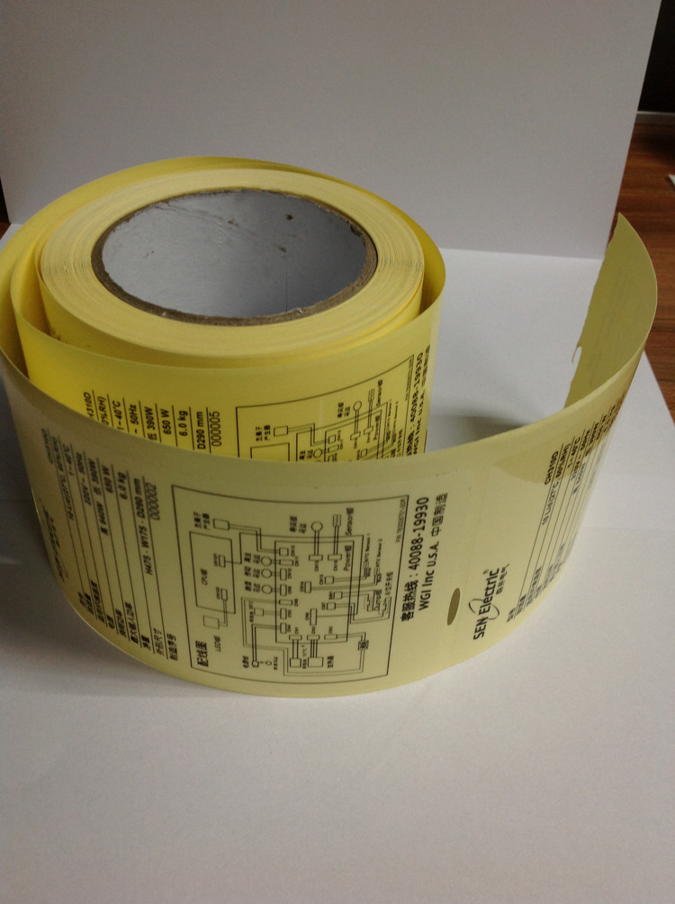 基材:25um(或50um)涂層處理聚酞亞胺薄膜,未經涂層處理的聚酞亞胺不能滿足性能要求、涂層處理能更加地滿足工藝上所需的打印條碼性以及對材料顏色與光澤度的要求。