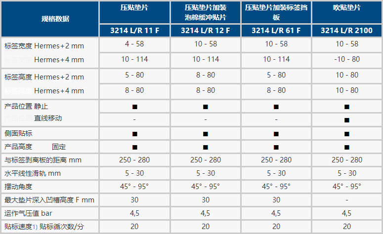 標簽在打印同時就會由墊片所吸附。旋轉氣缸會擺動到貼標位置 上。氣缸會將標簽放置于產品上 轉動角度及行程長度皆可調整。
